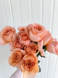Coral is a color that sings in harmony with a variety of palettes. These roses are a dream against shades of peach, cream, and blush, while also striking a playful contrast with deep jewel tones or vibrant yellows and greens. You’ll find them equally stunning in bohemian-style arrangements or classic, structured designs, making them versatile for whatever creative direction you’re headed.