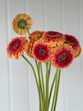 This stunning sunset hue captures the warmth of a setting sun, offering a captivating contrast to greens and creams. The rich burnt orange serves as an excellent focal point in any color palette, harmonizing beautifully with earthy tones, rustic shades, or even splashes of contemporary purples and blues. Picture how they will shine in autumn weddings, festive gatherings, or cozy dinner parties—these daisies are not just flowers, but expressions of joy and creativity.