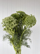 The Green Mist Lace Flower features large, dense domes adorned with an abundance of tiny white blooms, exuding a soft, ethereal quality that creates a dreamy vibe in your bouquets. The feathery foliage offers a delicate touch, making them an ideal choice as a filler flower that weaves effortlessly through your designs.